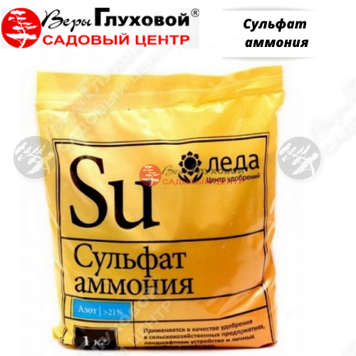 Сульфат аммония (сернокислый аммоний) содержит 21% азота и 24% серы, которую ученые считают четвертым главным элементом питания после азота, фосфора и калия. Сера положительно влияет на качество урожая, синтез белков, жиров и витаминов, а также снижает возможность накопления азота в виде нитратов. Внешние признаки недостаточного серного питания схожи с признаками азотного голодания