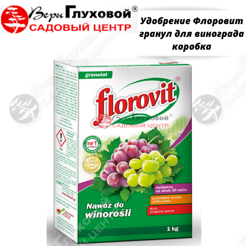 Многокомпонентное минеральное почвенное удобрение, применяется для приготовления места для винограда и удобрения уже растущих кустов в период вегетации. Благодаря специальной рецептуре препарат активен в течение всего вегетационного периода. В небольшой степени влияет на снижение уровня pH почвы, содействуя хорошему доступу к микроэлементам. Флоровит для виноградных растений содержит натуральные полезные ископаемые, что делает его более благоприятным для окружающей среды. Не содержит нитратов.